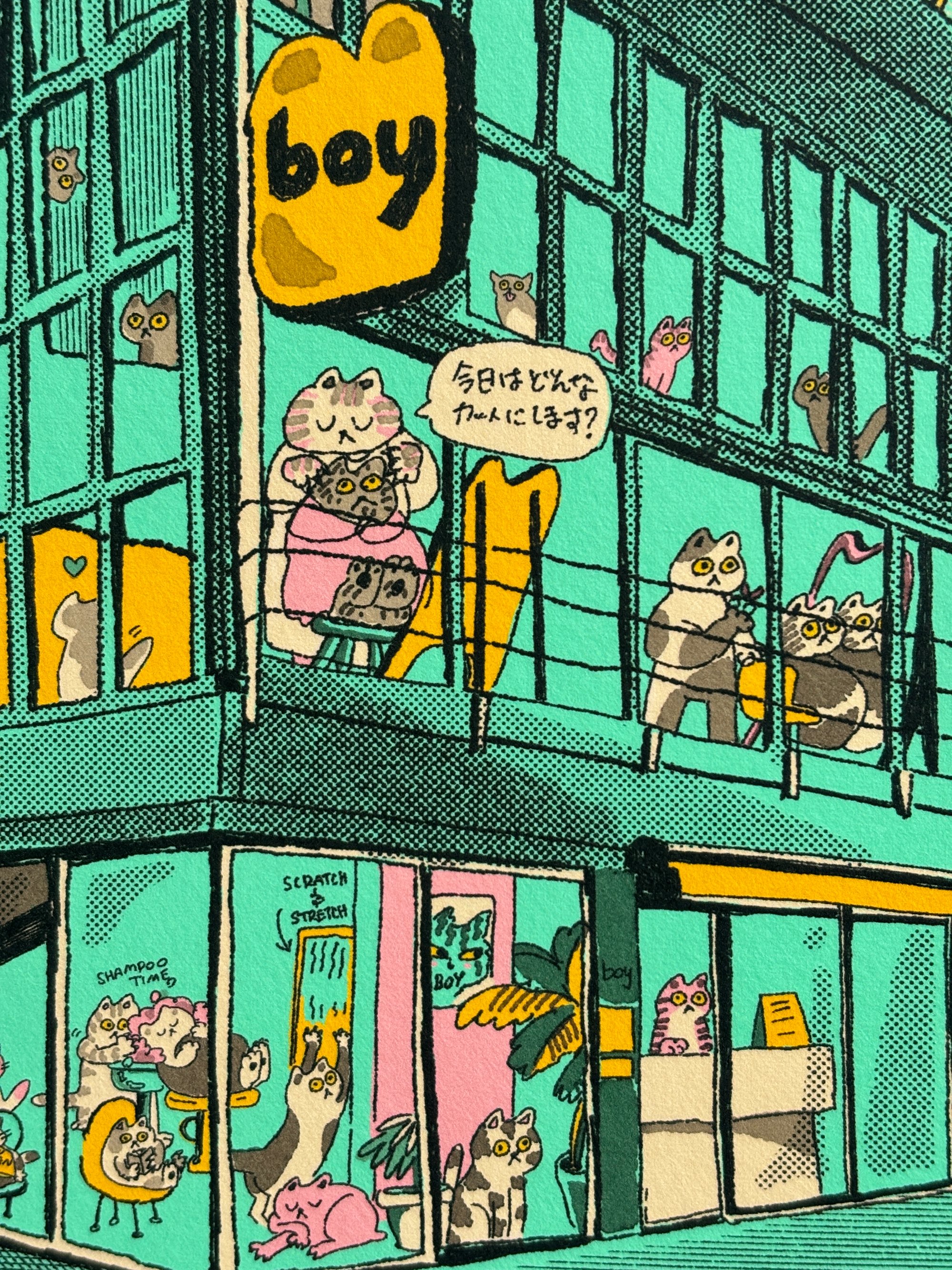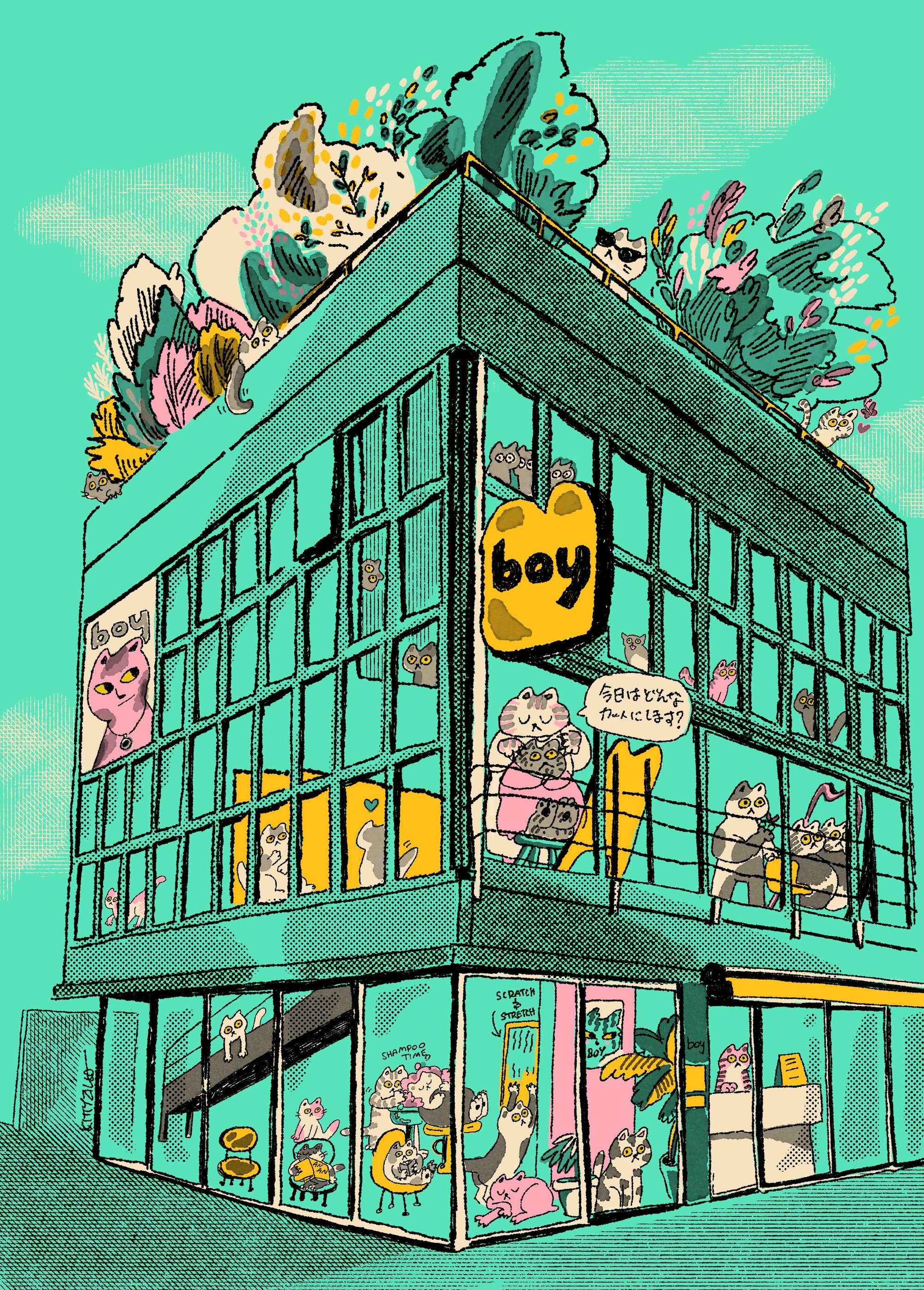 今年はポップアップに参加させてもらったのですが、お店のスペースをスモールビジネスに開放することで、コミュニティを築いているところが素敵だなと感じました。ポップアップでは、完璧なおカッパカットの男の子が1枚100円で似顔絵を描いていてとても印象的でした。